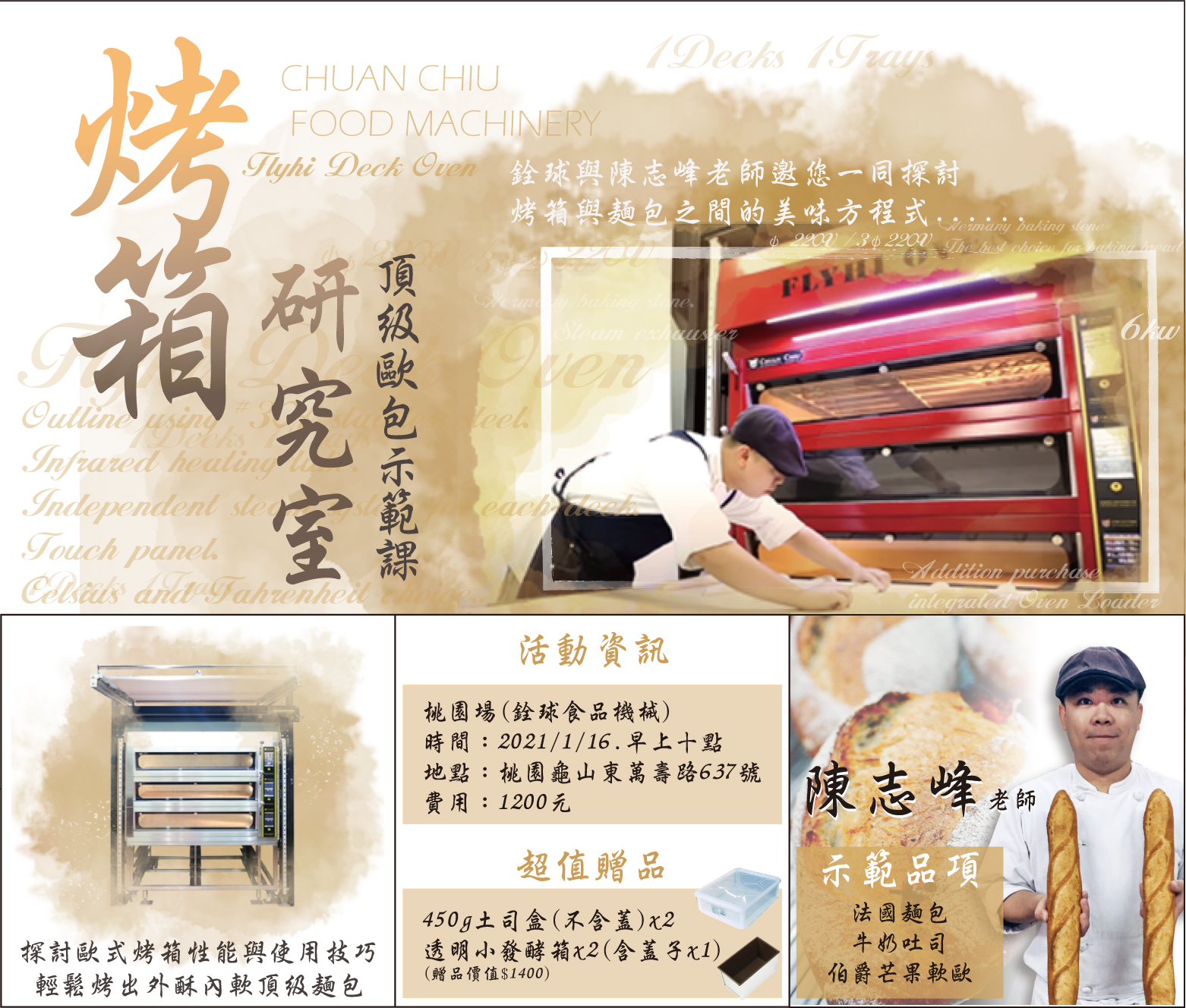 本次特別邀請到陳志峰老師為我們現場示範用歐包爐,將單純的麵包烤出迷人的頂級風味!